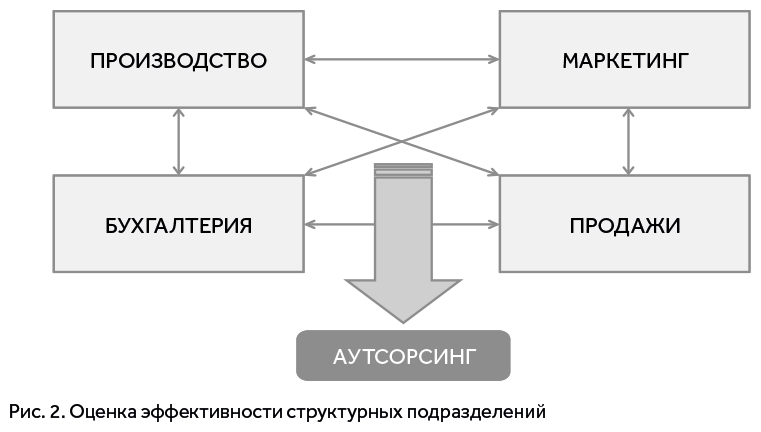 Разумеется, концепцию аутсорсинга нельзя, да и не нужно применять ко всем подразделениям. Иногда держать собственную службу правильнее, чем обращаться к услугам сторонней организации, даже если руководитель понимает, что переплачивает. Помимо удобства есть и другие соображения: безопасность, независимость, скорость и т.п. В данном случае мы говорим об аутсорсинге лишь для оценки эффективности работы. Никто не заставляет меня как руководителя отказываться от подразделений в штате собственного предприятия. Нет! Однако с точки зрения эффективности полезно узнать рыночную стоимость аналогичных работ и услуг. Эта информация позволит топ-менеджеру объективно оценить пользу внутренних служб. Когда руководители подразделений узнают об этом подходе, они начинают относиться к своей работе как к бизнесу внутри бизнеса.