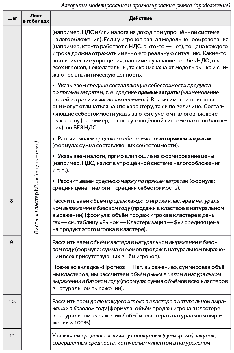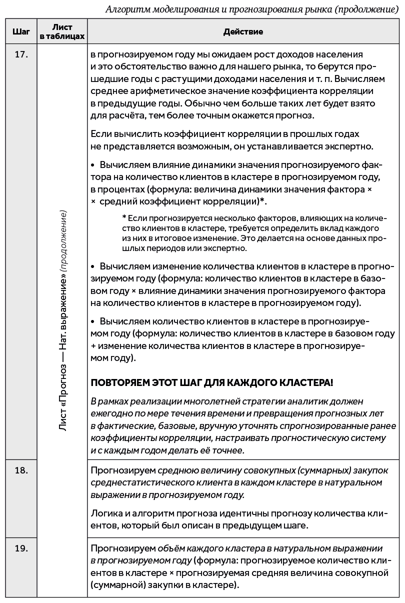 MVC-1 является многосоставным инструментом и предусматривает выполнение набора последовательных шагов. Самым простым и доступным способом работы с MVC-1 является представление его в электронных таблицах, например, Excel, таблицах Yandex, Google или аналогичной программе работы с данными. Также при желании можно разработать специализированный IT-продукт, заточенный под специфику конкретной компании. Мы разберём методику выполнения MVC-1 в Excel. Пробегитесь по алгоритму глазами. Если что-то будет непонятно, не переживайте, на данном этапе это не страшно. В дальнейшем я продемонстрирую работу с MVC-1 и поясню каждый шаг примерами. В будущем, во всём разобравшись, вы сможете опираться только на таблицу с алгоритмом, не перечитывая весь параграф книги. Это сэкономит ваше время.