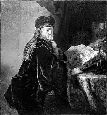 В зрелом творчестве Рембрандта книга становится обобщенным образом передового знания, атрибутом просвещения и символом свободомыслия. Мы видим ее на портретах философов, ученых, политических деятелей.