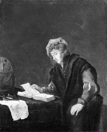 На портретах Рембрандт фиксирует не столько чтение как процесс, сколько факт общения с книгой. Скульптурные позы, сосредоточенные взгляды, одухотворенность лиц – взаимодействие с книгами показано одновременно как обыденное и сакральное, как быт и бытие. Портреты ученых напоминают моментальные фотоснимки. Склонившегося над большим томом словно внезапно окликнули – и он обращает быстрый, чуть недоуменный взор на зрителя.