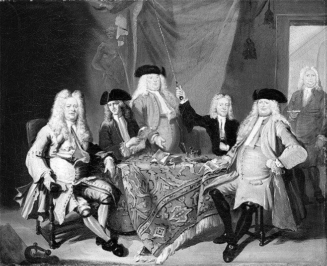 Корнелис Трост. Групповой портрет инспекторов амстердамской Медицинской коллегии, 1724, холст, масло
