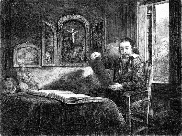 Глядя на офорт Рембрандта, изображающий Сикса с книгой у освещенного солнцем окна, думай о своем прошлом и настоящем.