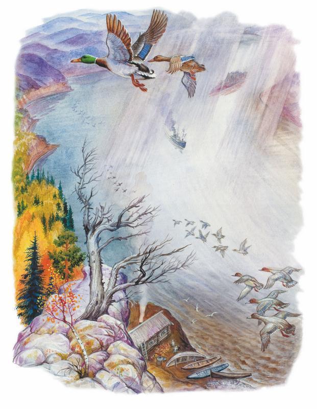 Рыбаки́ из брига́ды Григо́рия Афана́сьевича Ша́дрина – Васю́ткиного отца́ – совсе́м бы́ло приуны́ли. Ча́стые осе́нние дожди́ вспу́чили ре́ку, вода́ в ней подняла́сь, и ры́ба ста́ла пло́хо лови́ться: ушла́ на глубину́.