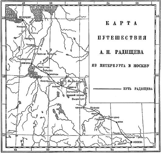 Карта путешествия Радищева из Петербурга в Москву{3}