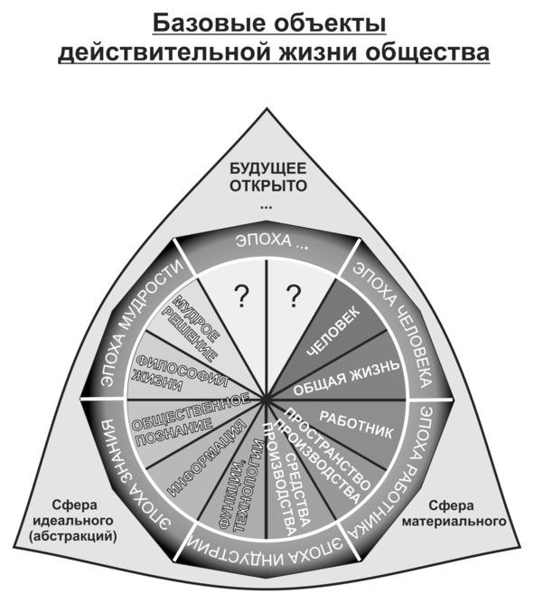 — Эпоха работника. Эта эпоха соответствует периоду существования градаций рабовладение и феодализм. В градации рабовладение доминирует объект-предмет «работник», а в градации феодализм доминирует объект-процесс «пространство производства».