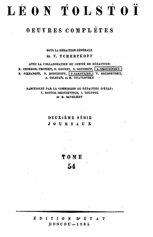 Полного собрания сочинений Л. Н. Толстого, предоставленной