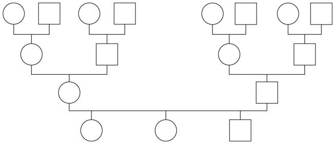 Все данные представлены в ней схематически: например, женщины обозначаются кругом, мужчины — квадратом или треугольником и т. д. В ней также можно изобразить гармоничные или конфликтующие взаимоотношения между членами семьи, обозначая их штрихами разного цвета или вида.
