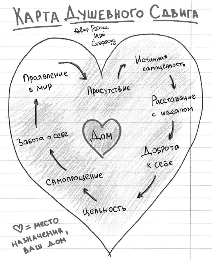Рассказав о концепции душевного сдвига, которая основана на личном опыте, я предложу вам изучить ваши переживания с помощью письменных заданий, эскизов и визуальных заметок, а также ментальных карт. Если вы столкнетесь с дискомфортом, уязвимостью, удивлением или внутренним вызовом во время упражнений и самоанализа, пожалуйста, оставайтесь добры и нежны к себе. За неприятными ощущениями часто скрывается важнейшая информация, которая станет для вас путеводной звездой на пути к исцелению. Главное – не бойтесь.