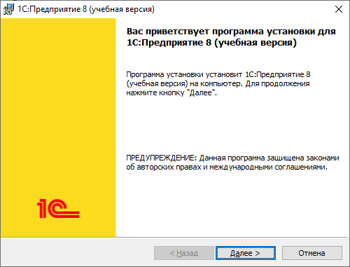 Рис. 0.2. Установка платформы «1С:Предприятие»