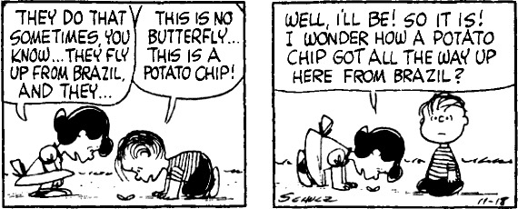 — Ну ничего себе! Точно! И как это только картофельный чипс мог попасть сюда из самой Бразилии!