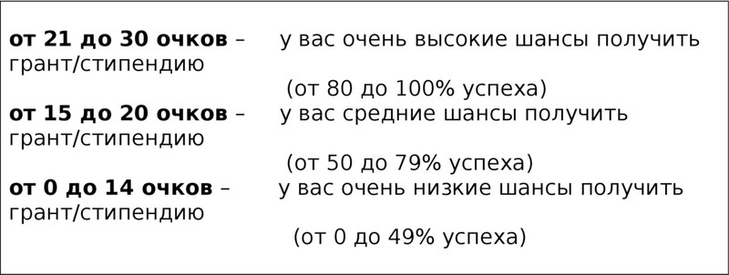 4. Расшифровав результаты тестирования, вы наглядно увидите процент вашего шанса на получения гранта/стипендии;