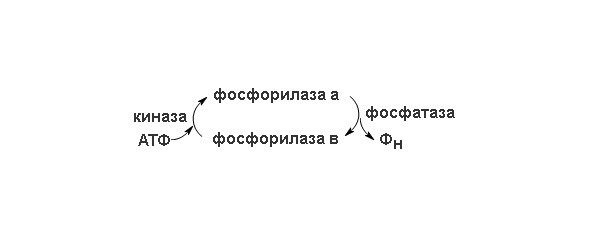 Рисунок 2. Схема перехода двух форм фосфорилазы.