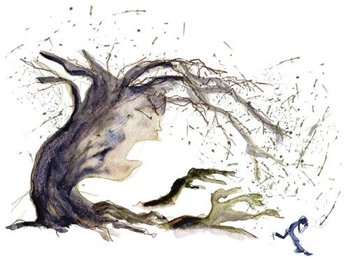 — Чем-чем? — Он опасливо дотронулся до щеки. На лице у него была деревянная маска! Нгаи глянул на свои руки и увидел сухие ветки. Пронзительно крича, несчастный бросился в еловые лапы, но ноги уже не повиновались ему.