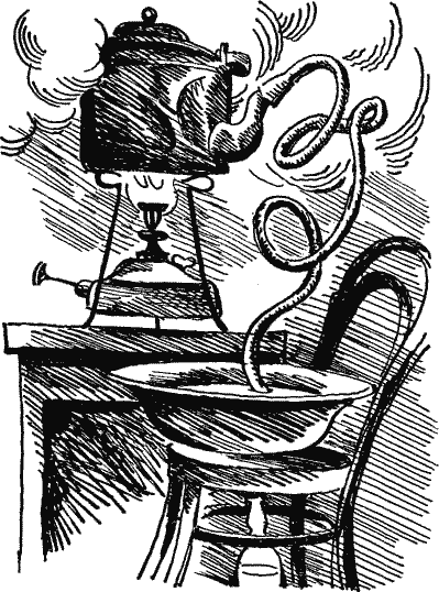 Наш маститый ученый привил вполне самоотверженно указанную бациллу — себе, отчего стал болтать до 1000 слов в минуту, из них — 120 % гнуснейшей сплетневой чепухи. Благодаря, однако, геройской выдержке ученого им было открыто средство для борьбы с болезнью.