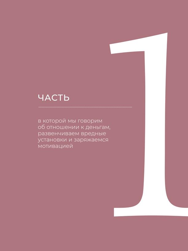 В первой части мы немного разомнемся — как перед забегом. Запасемся мотивацией, чтобы потом рвануть на всех парах. Поговорим об отношениях с деньгами и о привычках, честно оценим свою ситуацию. Эта часть небольшая, но самая важная, без нее вас вряд ли заинтересует все остальное.
