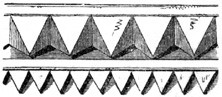 The mode of building with semicircular arches, massive piers, and thick walls with broad pilaster buttresses, was now laid aside; and the pointed arch, supported by more slender piers, with walls strengthened with graduating buttresses, of less width but of greater projection, were universally substituted in their stead. The windows, one of the most apparent marks of distinction, were at first long, narrow, and lancet-shaped: the heavy Norman ornaments, the zig-zag and other mouldings peculiar to the Norman and Semi-Norman styles, were now discarded; yet we often meet with certain decorative ornaments, as the tooth ornament, which, though sometimes found in late Norman work, is almost peculiar to the Early Pointed style; also the ball-flower, prevalent both in this and the style of the succeeding century. Many church towers were also capped with spires, which now first appear. This style prevailed generally throughout the thirteenth century, and is usually designated as the Early English.