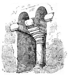 The Roman basilicas, or halls of justice, some of which were subsequently converted into churches, to which also their names were given, furnished the plan for the internal arrangement of churches of a large size, being divided in the interior by rows of columns. From this division the nave and aisles of a church were derived; and in the semicircular recess at the one end for the tribune, we perceive the origin of the apsis, or semicircular east end, which one of the Anglo-Saxon, and many of our ancient Norman churches still present.