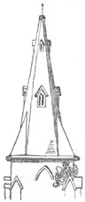 did this style commence, and how long did it prevail or continue?Outside the roof of some churches, on the apex of the eastern gable of the nave, is a small open arch or turret, in which formerly a single bell was suspended: this was the sanctus or sacringe bell, thus placed that, being near the altar, it might be the more readily rung, when, in concluding the ordinary of the mass, the priest pronounced the Ter-sanctus, to draw attention to that more solemn office, the canon of the mass, which he was now about to commence; it was also rung at a subsequent part of the service, on the elevation and adoration of the host and chalice, after consecration171-*; but though the arch remains on the gable of the nave of many churches, the bell thus suspended is retained in few; amongst which may be mentioned those of Long Compton, Whichford, and Brailes, in Warwickshire, where this bell is still preserved hung in an arch at the apex of the nave, with the rope hanging down between the chancel and nave171-†. Mention of this bell is thus made in the Survey of the Priory of Sandwell, in the county of Stafford, taken at the time of the Reformation: “Itm the belframe standyng betw: the chauncell and the church, wt. a litle sanctm bell in the same.” Generally, however, a small hand-bell was carried and rung at the proper times in the service, by the acolyte; and in inventories of ancient church furniture we find it often noticed as “a sacringe bell;” but in an inventory of goods belonging to the chapel of Thorp, Northamptonshire, it is described as “a litle sanctus bell.” A small sacringe bell, of bell-metal, with the exception of the clapper, which was of iron, was in 1819 discovered on the removal of some rubbish from the ruins of St. Margaret’s Priory, Barnstable; and within the last few years a small sanctus bell was found on the site of a religious house at Warwick172-*.