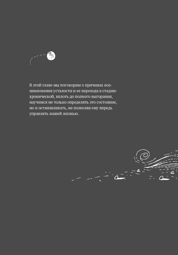 Однажды в интернете мне на глаза попалась реклама семинара «Стратегическая усталость». Его создатель очень точно описал признаки накопления психологической усталости и ее разрушительные последствия для карьеры и жизни. Я был поражен: «Бог мой! Да это же про меня!» Желание поскорее вырваться из этого состояния привело меня на двухдневный тренинг, посвященный повышению эффективности бизнесменов. В самом начале первого дня тренер заявил, что раздел, посвященный стратегической усталости, — самый кликабельный среди остальных, то есть эта тема интересовала людей больше, чем вопросы бизнеса и повышения эффективности. «Да, это именно то, что мне сейчас нужно больше всего», — мысленно соглашался я с каждым его словом. Представьте себе мое удивление, когда на второй день, за полчаса до окончания тренинга, тренер сказал: «А теперь немного поговорим об усталости», — и поведал, что нужно больше спать и заниматься спортом. Тогда-то я и осознал степень важности этой темы.