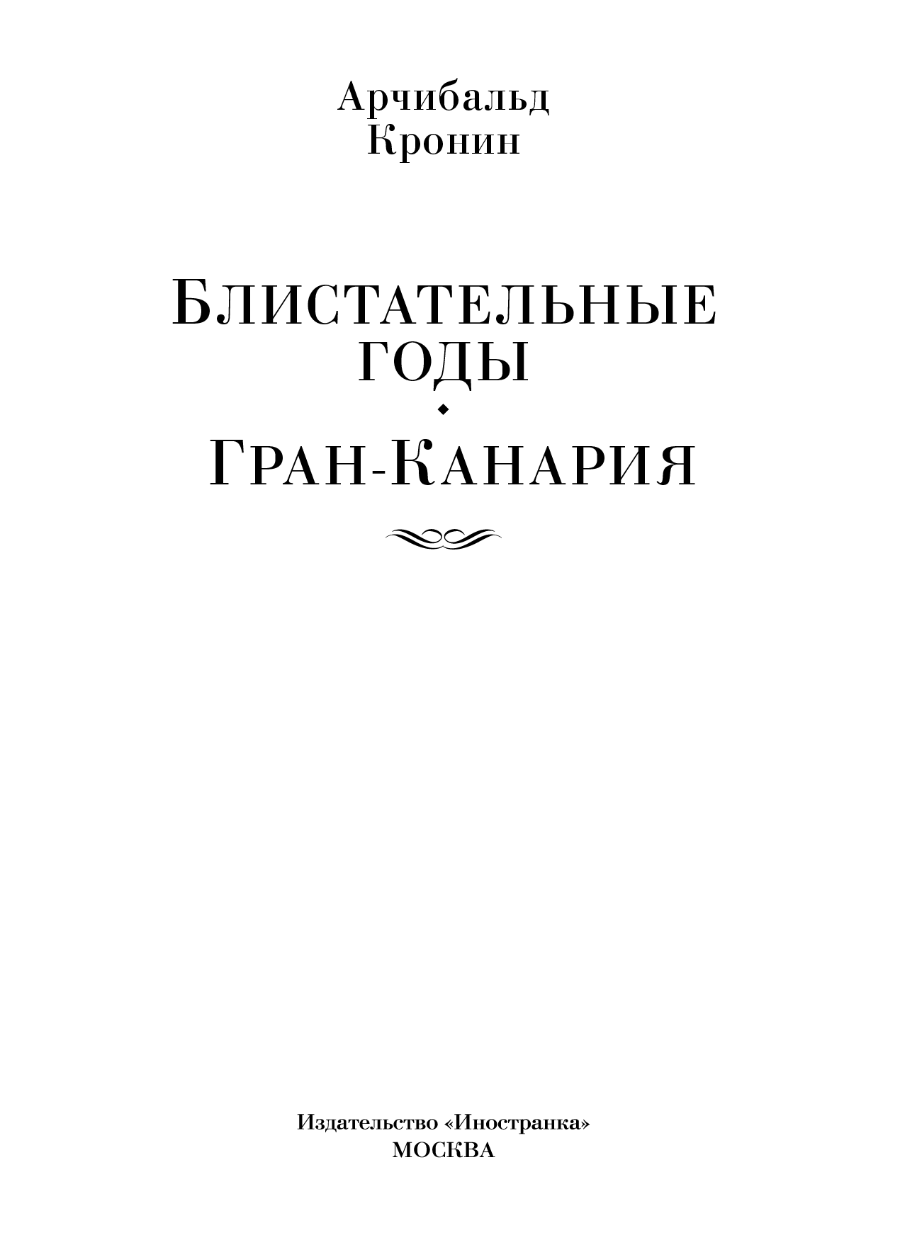 Блистательные годы. Гран-Канария : повести, роман / Арчибальд Кронин ; пер. с англ. И. Куберского, Э. Несимовой. — М. : Иностранка, Азбука-Аттикус, 2023. — (Иностранная литература. Большие книги).