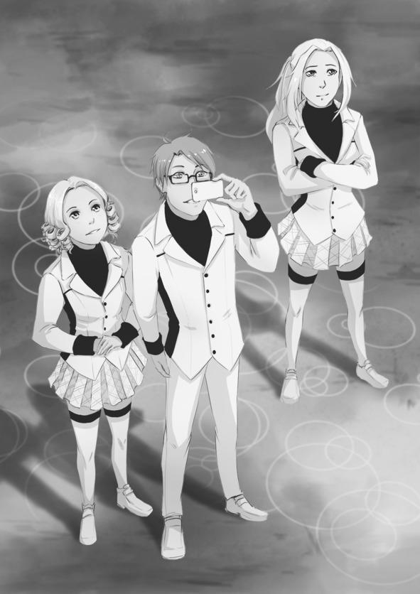 Последней из машины вышла Аой — женщина впечатляющего роста с типичной командирской выправкой и суровым лицом. Как и у всех остальных, верхней одеждой ей служил черно-белый удлиненный пиджак-полуплащ. На боку расположились ножны, и из них торчала причудливая гарда. Аой поправила аккуратные очки в прямоугольной оправе, окинула взглядом пятиэтажку и, облокотившись на минивэн, начала что-то рассказывать.