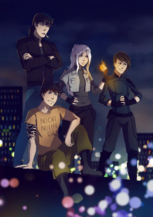Чуть дальше от края крыши стояли две девушки: одна с зачесанными в высокий хвост белоснежными волосами, другая — шатенка с выбритым правым виском. Черная одежда служила энфорсерам хорошим камуфляжем. Исключение составлял мелкий, на котором красовалась горчичного цвета футболка с мультяшной мордой и надписью No Cat No Life.