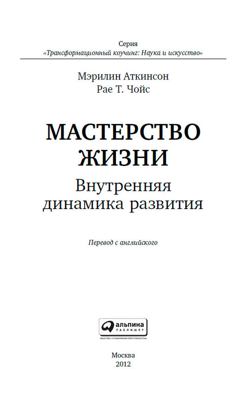 Мастерство жизни: Внутренняя динамика развития / Мэрилин Аткинсон, Рае Т. Чойс; Пер. с англ. — М.: Альпина Паблишер, 2012. — (Серия «Трансформационный коучинг: Наука и искусство»).