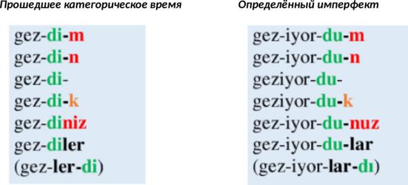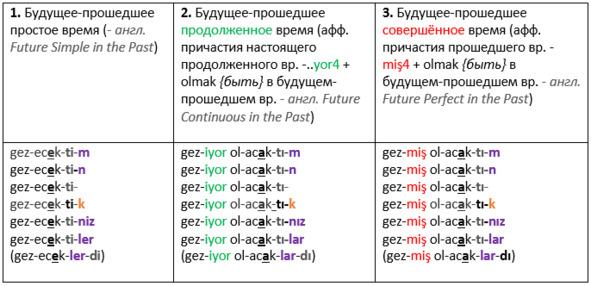 2. Группа будущих-прошедших времён (2-й тип времён — личные аффиксы, как в прошедшем категорическом вр.)