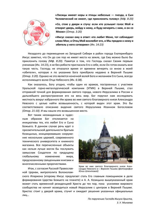 Экспериментальный проект духовного преображения России как страны, избранной Богом в качестве нового святого Иерусалима