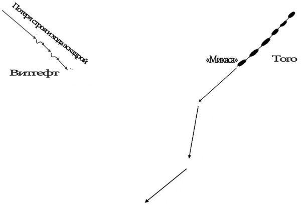 Тут «Цесаревич» неожиданно снова потащило в сторону.