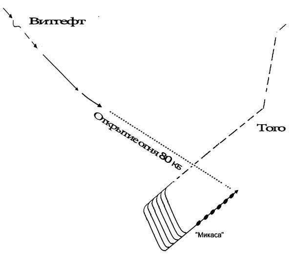 Фактически японская колонна, сделав небольшое уклонение, всё же пересекла генеральный курс русской эскадры, а дальше…