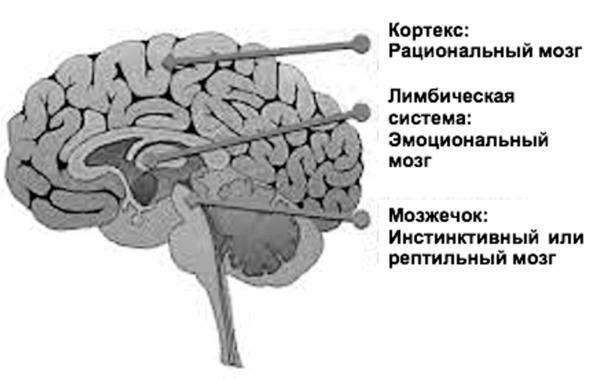 Ученые выделяют следующие основные зоны мозга — кортекс, или кора головного мозга, лимбическая система и мозжечок. Кортекс отвечает за очень многие процессы, включая первичную обработку поступающей информации, краткосрочную или рабочую память. Разные зоны кортекса обрабатывают многочисленные внешние сигналы. Например, в обработке зрительных сигналов участвуют затылочные зоны коры головного мозга. При этом задействуется до 25% коры головного мозга. Звуковые сигналы обрабатываются в височных долях кортекса. За двигательные сигналы отвечают теменные области.