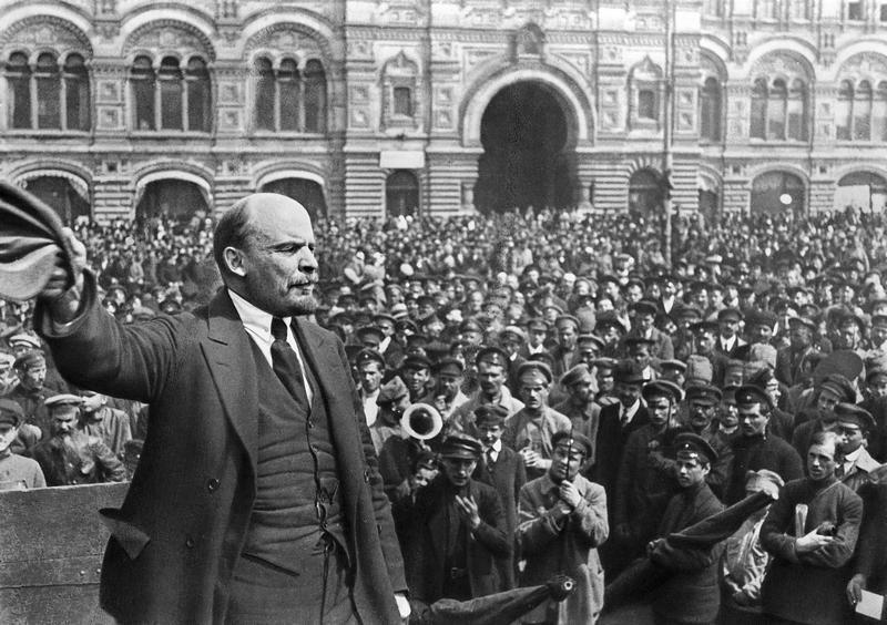 Владимир Ильич Ленин произносит речь на Красной площади на открытии временного памятника Степану Разину. 1 мая 1919 года . Фотограф Г.П. Гольдштейна.