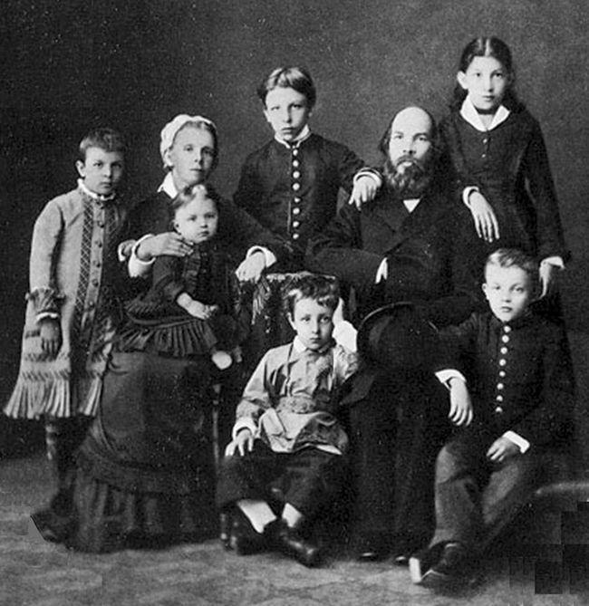 Семья Ульяновых: Мария Александровна, Илья Николаевич и их дети: Ольга, Мария, Александр, Дмитрий, Анна и Владимир. 1879