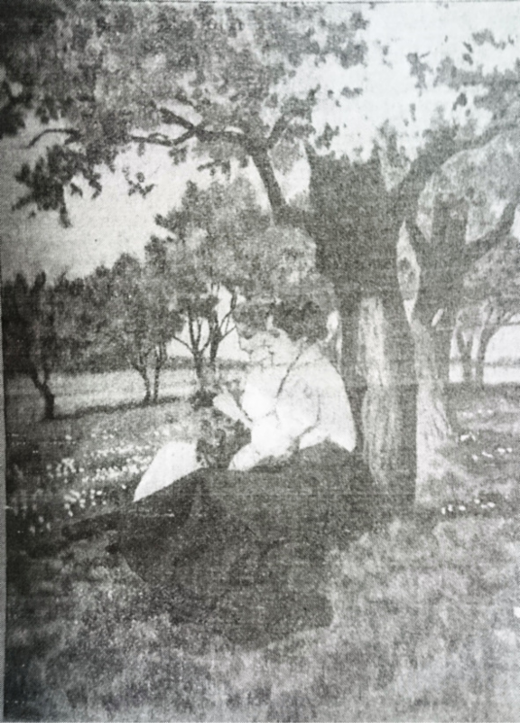 Вернулась Лидушка с большим букетом полевых цветов. И обе девушки уселись с ними на траве под яблоней, укладывая цветок к цветку, плели венок, и их голоса услышали радостно звенели.