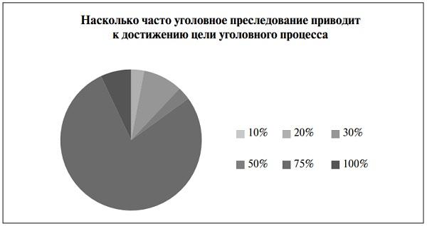 Полагаем, затруднение вызвано не тем, что автор недостаточно разобрался в сущности данного института, а в том, что применительно к согласительным процедурам установка цели — достижение объек-тивной или какой-либо иной истины — не допустимо. Все просто. Истина не достижима. Как бы отчаянно не выступали сторонники данного института, истина существовала только непосредственно в момент совершения преступного деяния, а после ее уже нет, есть только субъектное восприятие события преступления, следовой картины, материалов уголовного дела и т.д. Весьма примечательно, что лишь 78% правоприменителей считают, что в лишь 75% случаях по результатам уголовного преследования достигается цель уголовного процесса (см. диаграмму 1)9.