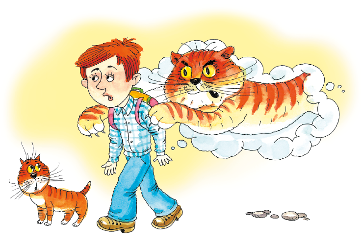 – Подожди, Гусев! У меня ведь ещё десять желаний есть. Слушай мой план. Я хочу проучить Катьку Плюшкину. Уж очень она воображает в последнее время. Списывать не даёт. В общем, завтра принесёшь хороший мешок и поймаешь Плюшкиного Кузьку. И будет у нас кот в мешке, – Петька хихикнул, – а Плюшка пусть побегает, поищет. Может, меньше воображать будет. А потом мы подкинем ей записку, чтобы несла килограмм конфет. И тогда получит Кузьку. Здорово?