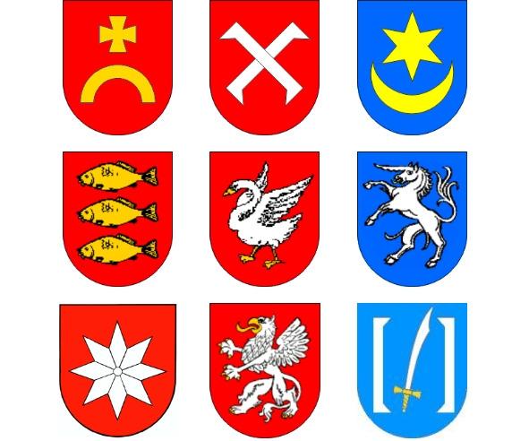 Таму першыя ўласныя гербы таксама мелі просты выгляд. Часцей за ўсё гэта былі спалучэнні розных ліній, часта выкарыстоўваліся эмблемы, асновай якіх з’яўлялася выява стралы, мяча, крыжа, падковы або маладзіка.