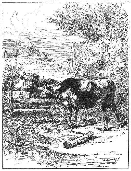 A COW that had a crooked horn learned to open gates and let down bars with it, and, as her master took no pains to keep her at home, she roamed the roads unrestrained. One day, in passing a neighbor’s meadow, she saw an old brindled cow inside hobbled by a rope and clog of wood fastened to one leg.