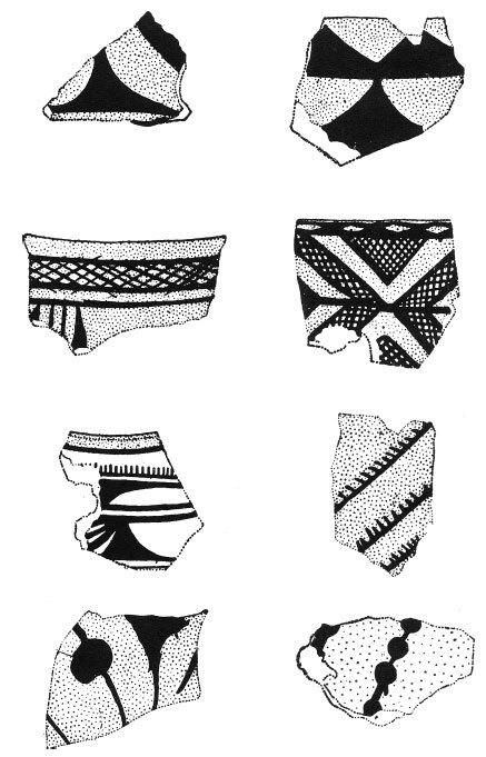Фрагменты древней посуды из Центральной Азии. Слева – Северный Китай (Хонань); справа – Туркмения (Анау)