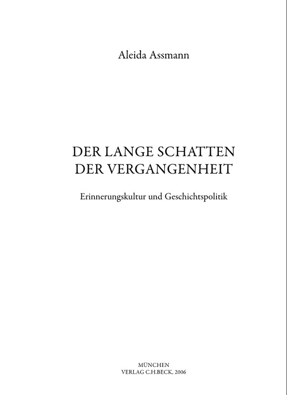 Длинная тень прошлого: Мемориальная культура и историческая политика. / Алейда Ассман. — М.: Новое литературное обозрение, 2014.