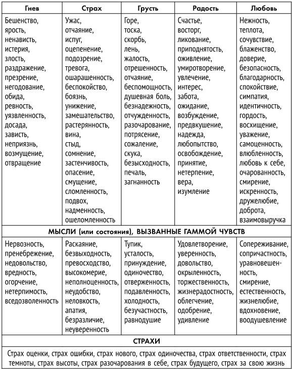 Чтобы тебе было проще распознавать свои чувства и эмоции, ниже ты найдешь их полный список.