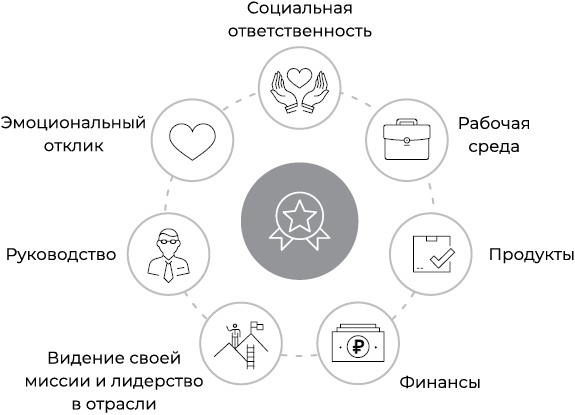 Видение своей миссии и лидерство в отрасли. Этот фактор характеризует «миссию» компании в глазах клиентов. Как клиенты понимают компанию, знают ли, к чему она стремится и что представляет собой сейчас? Воспринимают ли её как устаревшую, отставшую от трендов? Этот фактор тесно связан с лидерством в отрасли не только самой компании, но и ее руководства, потому что часто образ компании в сознании потребителей неразрывно связан с образом её руководства, лицом компании, которому общественность либо доверяет, либо нет.