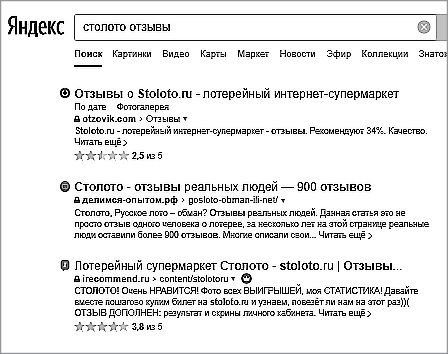 Рассмотрим, как именно поисковая выдача влияет на формирование репутации. Кроме самих сайтов из выдачи, которые бывают разной тональности (положительной, отрицательной, смешанной, нейтральной), значительное влияние на репутацию оказывают «сниппеты»7, поисковые подсказки, а также специальные сервисы поисковиков со своими «колдунщиками»8.