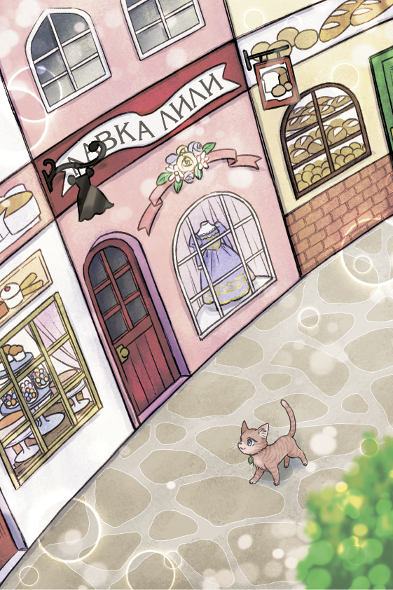 По залитой солнцем мостовой под ясным голубым небом неторопливо гулял котёнок и с интересом разглядывал витрины. Вот там переливаются похожие на самоцветы леденцы, рядом выставлено платье из необычной ткани, расшитой блестящей нитью, а из булочной по соседству восхитительно пахнет горячим хлебом.