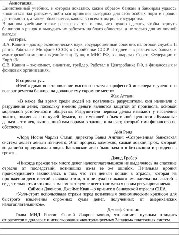 Единственный учебник, в котором показано, каким образом банкам и банкирам удалось «подняться над рынком», добиться принятия выгодных для себя особых норм и правил деятельности, а также объясняется, какова во всем этом роль государства.
