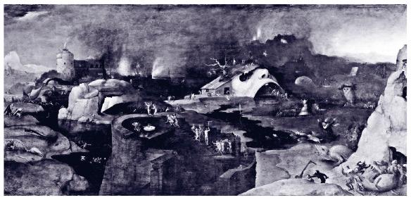 Сошествие Христа в ад. Адам и Ева в мольбе простирают к нему руки, стоя на вершине разрушенной башни. Позади них из глубин ада поднимаются персонажи из еврейской Библии, среди них Авраам и Исаак с жертвенным барашком и Ной с моделью ковчега. Последователь И. Босха.
