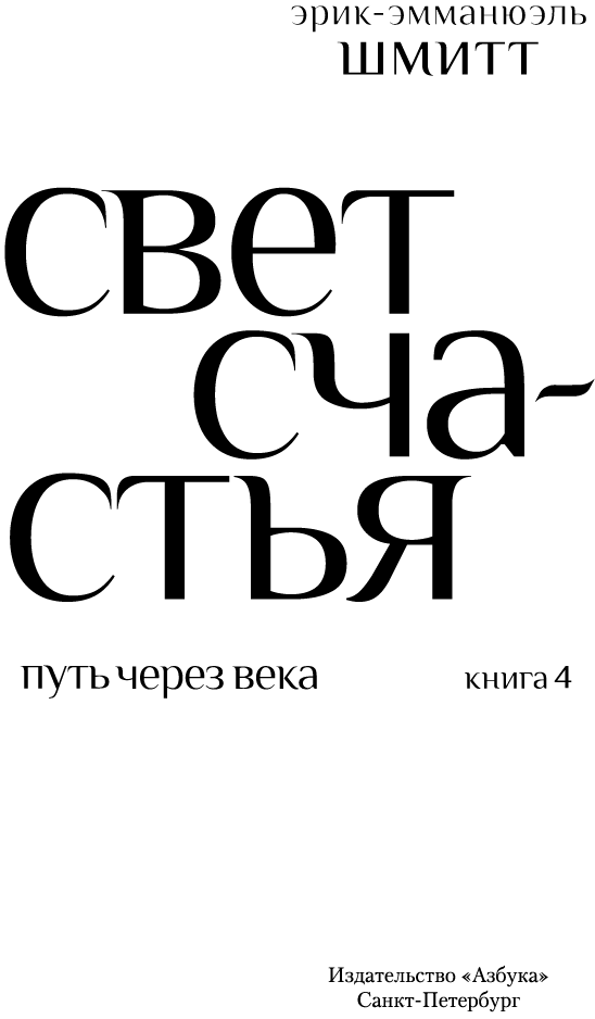 Путь через века. Кн. 4 : Свет счастья : роман / Эрик-Эмманюэль Шмитт ; пер. с фр. Е. Березиной, М. Брусовани. — СПб. : Азбука, Азбука-Аттикус, 2025. — (Большой роман).