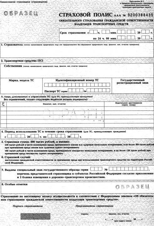Подтверждением того, что вы застраховали свою гражданскую ответственность, является страховой полис установленного образца, который вам выдадут в страховой компании (как уже говорилось, водитель должен иметь его при себе). В соответствии с пунктом 24 части IV Правил ОСАГО вместе со страховым полисом в страховой компании вам бесплатно должны выдать перечень представителей данной страховой компании в субъектах Российской Федерации, специальный знак государственного образца по установленной форме, текст Правил ОСАГО, два бланка извещения о ДТП по форме, утверждаемой Министерством внутренних дел Российской Федерации по согласованию с Министерством финансов Российской Федерации.