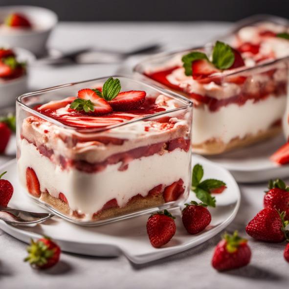 При подаче можно украсить тирамису свежими ягодами клубники или мятой.